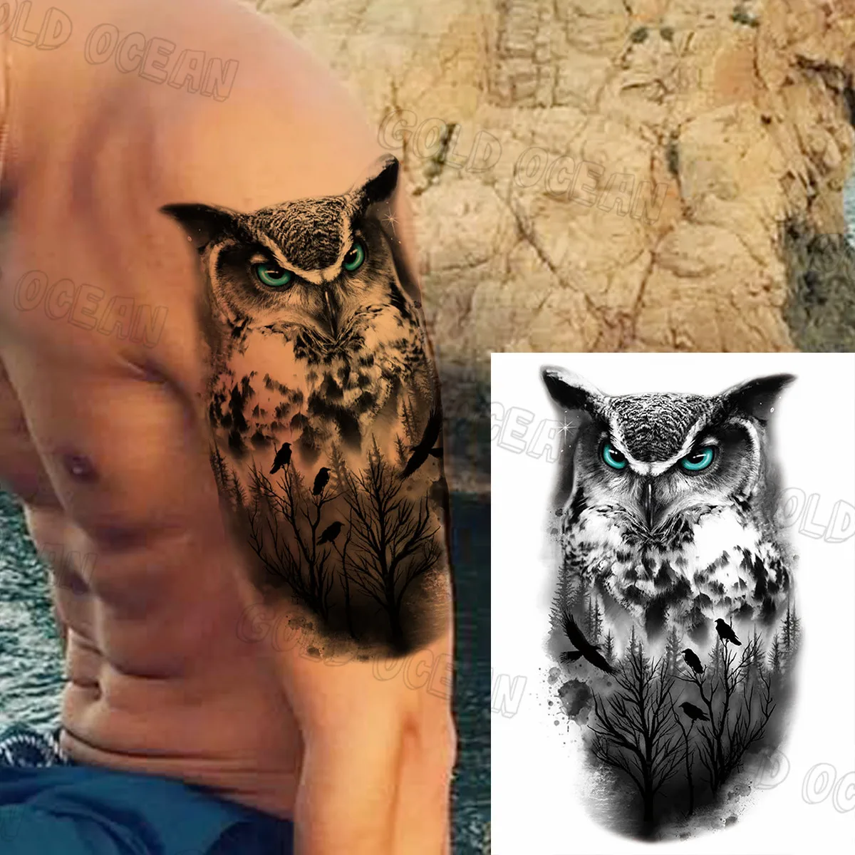 Kupit Tatuirovka I Bodi Art Black Owl Forest Temporary Tattoos For Men Realistic Wolf Tiger Rose Flower Lion Butterfly Flower Fake Tattoo Sticker Arm Tatoos